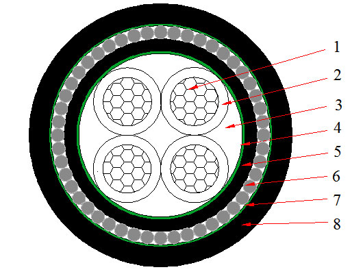 | Номинальная площадь поперечного сечения | Толщина изоляции | Диаметр стальной проволоки | Толщина облочки | Приблизительный наружный диаметр | Приблизительный вес | Максимальное сопротивление постоянного тока проводника(20℃) | По току | |